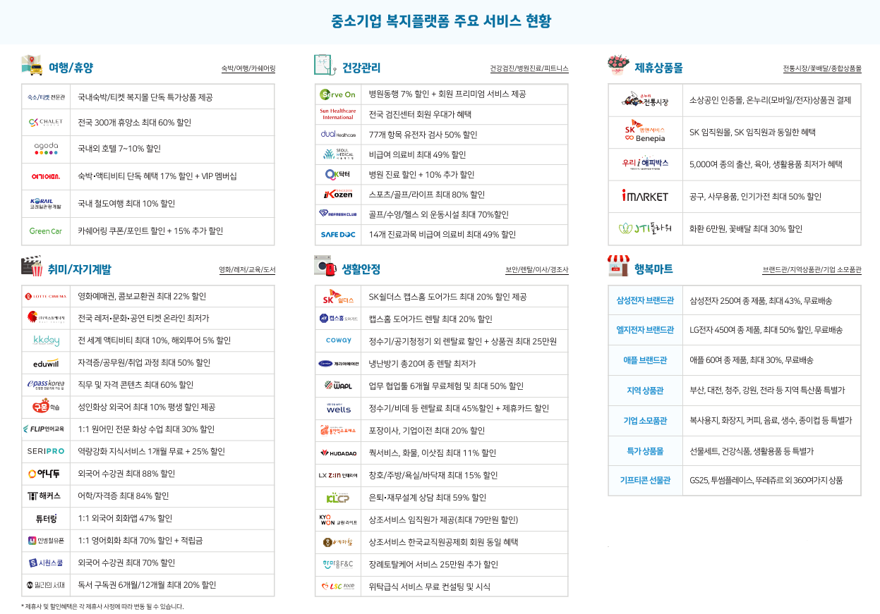 쉽게 설명해서 일부 대기업들의 복지혜택을 똑같이 받을 수 있는 중소기업 복지플랫폼!