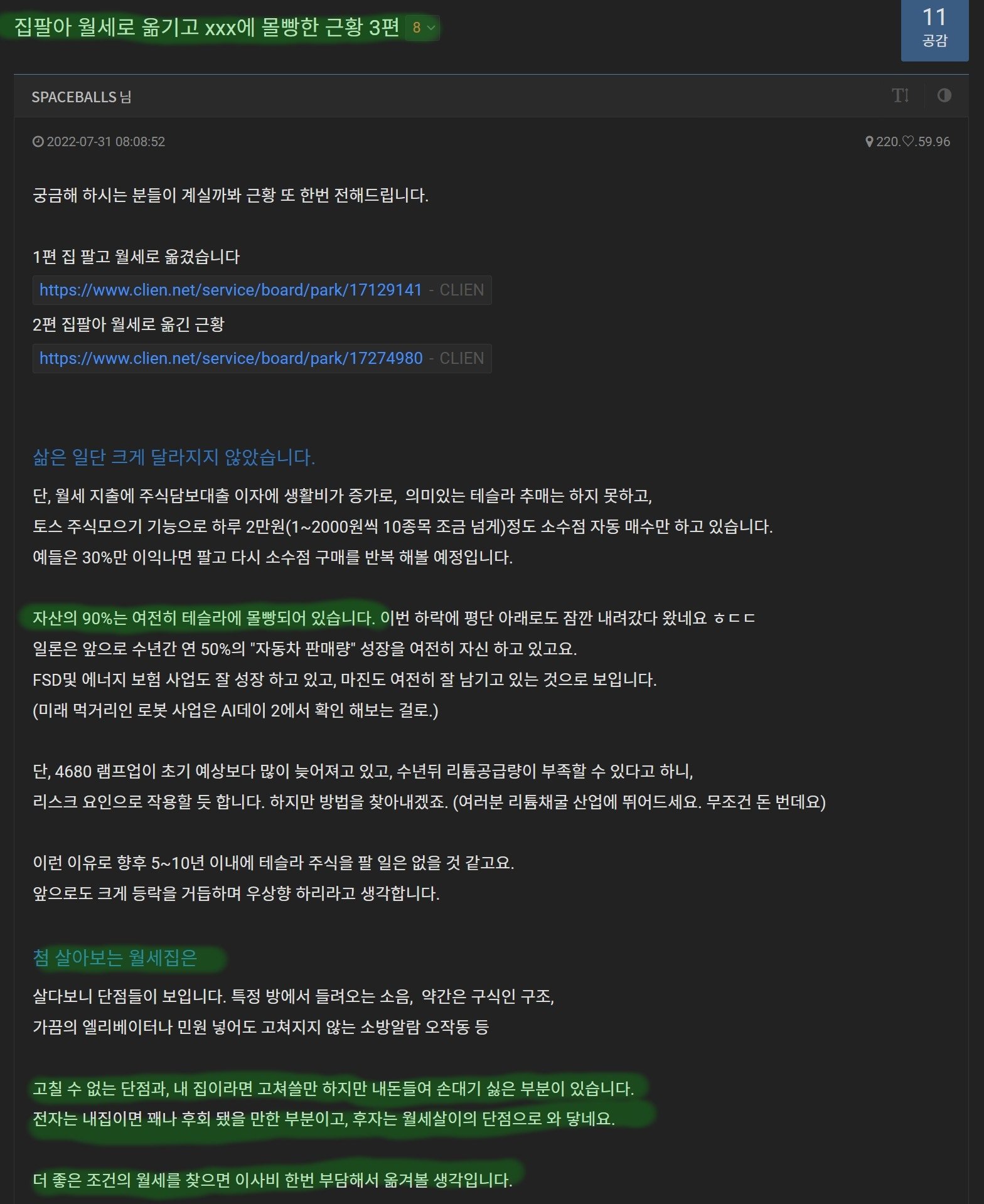 전재산을 테슬라의 투자한 40대가 온라인 커뮤니티에 화제다.