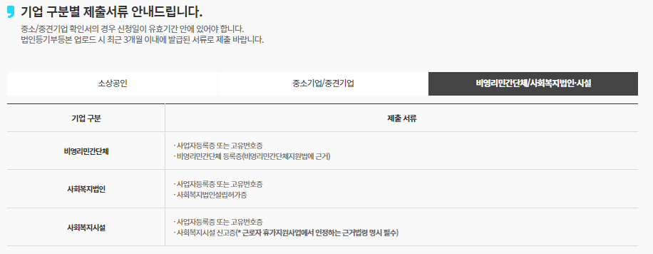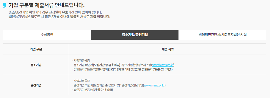 중소, 중견기업 확인서의 경우, 신청일이 유효기간 안에 있어야 하며,